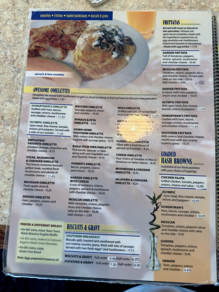 - Loaded Hash Browns: Indulge in flavor-packed combos such as the Mexican version at $6.95 or the hearty Denver style at $7.50.